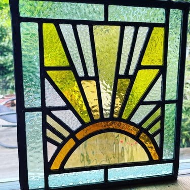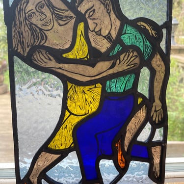 The glass used can be coloured or textured and lead is used to bring the design together. Surface treatments include the use of paint and enamels and also fused glass elements,