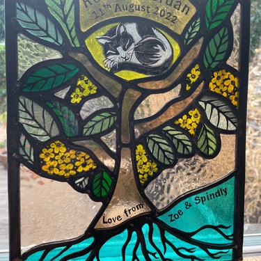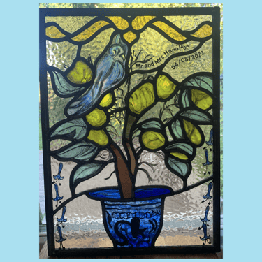 We also accept commissions for other smaller glass items that aren’t windows. If you would like a quote, please get in touch with us and provide an outline of what you would like, including size, colour, text and any design ideas.